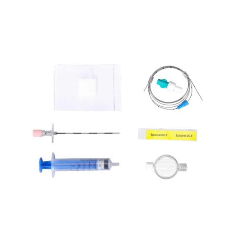 Le kit d'anesthésie péridurale comprend une aiguille péridurale, un cathéter péridural (type général ou type renforcé), une aiguille d'introduction, un guide d'introduction, un connecteur de cathéter, un filtre à liquide et une seringue à faible résistance. Il est utilisé pour la ponction péridurale et l'injection de médicaments liquides dans l'espace péridural pendant l'anesthésie péridurale.